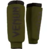 Made with 100% Skintex leather, the Venum Elite Standup Shin Guards combine comfort and great durability at an affordable price. Providing pro-anatomical reinforcement on the important key areas (shinbone and instep), they deliver ultimate protection with optimal striking surface. The 2 large hook and loop straps and elastic bands placed under the foot and heel ensure a secure custom fit. Premium Skintex leather construction. High density foam with additional padding (shinbone and instep) for enhanced shock absorption. Lightweight design providing unrestricted mobility and speed. Large hook and loop straps for a no-slip fit. Embossed label and slick graphics. Handmade in Thailand.