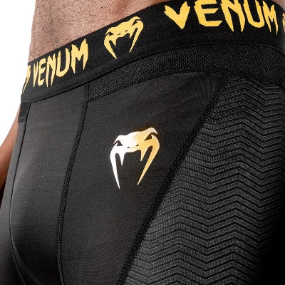 The Venum G-Fit Compression Spats provide optimal muscle compression during your cross training, fitness, or combat sports sessions. They are designed to prevent mat burns during ground fighting and can also be worn under jogging pants to assist with body-heat management. By maintaining moderate muscular compression, optimal blood circulation throughout the leg is achieved and can help speed up recovery. The G-Fit “second skin” feel was created with lightness and ventilation in mind. These spats are made from of a mixture of traditional fabrics and mesh, embellished with a glossy Venum logo. Features: 87% polyester, 13% elastane. Soft and durable fabric. Improves blood circulation to stressed muscles. Decreases recovery time. Wide elastic waistband.