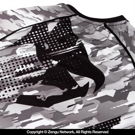 The new Tecmo line from Venum features a unique base design with classic Venum logos. Typical quality construction with reinforced seams and a fitted cut. The internal rubber lining at the waist will keep this rashguard from riding up. Stylish pixelated graphics are incorporated into the design.